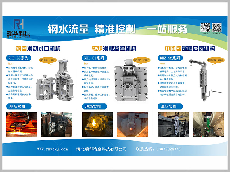 河北瑞華是一家集研發、制造、銷售鋼水流量控制機構和提供熱修現場施工的企業。企業秉承自主研發、科學創新、精益求精的理念,生產高質低耗的轉爐滑板擋渣機構、中間包塞棒機構、中間包快換機構、鋼包滑動水口機構以及配套液壓耐材產品,并承接冷熱修工段工程承包、轉爐擋渣系統承包服務。服務于廣大鋼鐵企業。企業通過了質量管理、職業健康管理、環境管理三體系認證,取得了建筑施工資質以及安全生產許可。目前企業客戶覆蓋國內外100多家鋼廠,產品遠銷俄羅斯、伊朗、緬甸等國,其中涉及到50噸到300噸不等的轉爐和電爐客戶,為多家鋼鐵企業提供總包施工服務。